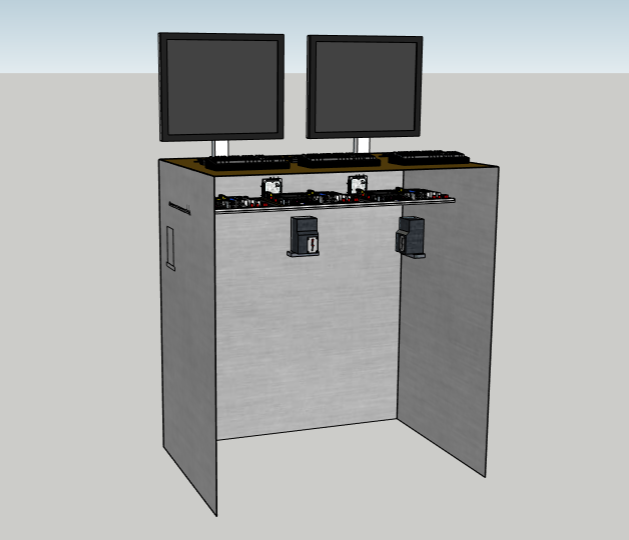L’équipe a souhaité pouvoir effacer puis reformater les disques durs, directement chez les donateurs. nous avons réfléchi à la conversion d'une armoire métallique de bureau. Nous avons donc modélisé ce meuble en 3D pour imaginer comment nous allions l'utiliser. Nous avons décidé de réaliser ce projet en utilisant du matériel reconditionné/ de récupération.
